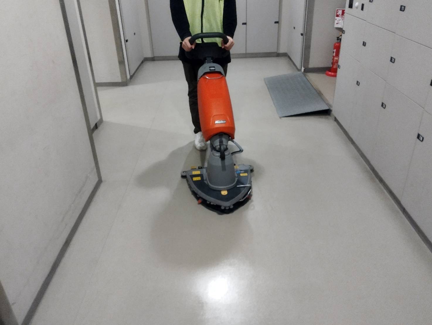 共用部洗浄、廊下や事務室など床洗浄+ワックス